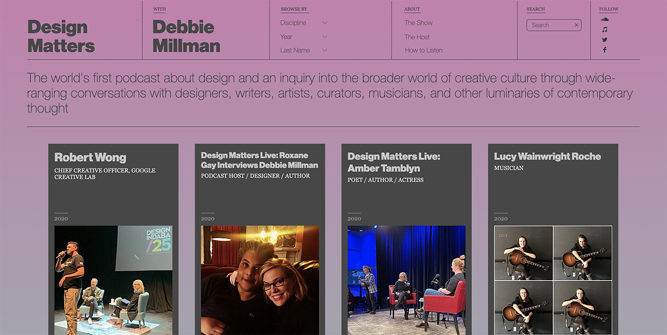 The world's first podcast about design, and an inquiry into the broader world of creative culture through wide-ranging conversations with designers, writers, artists, curators, musicians, and other luminaries of contemporary thought.