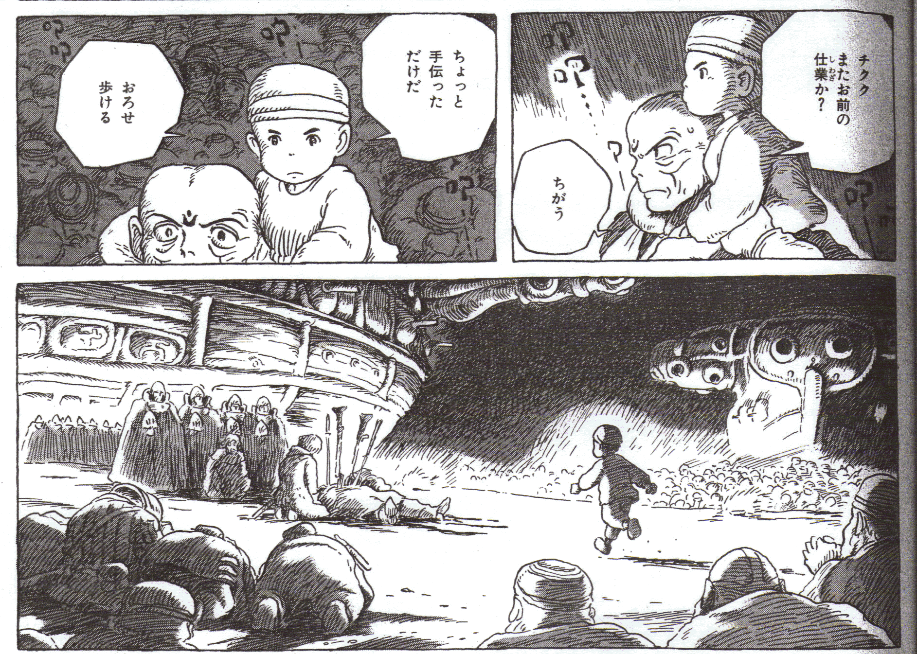 Before turning to film, he worked as a manga artist. His drawing skills are incredible, and his style unmistakeable. Here are cells from Nausicaa of the Valley of the Wind: