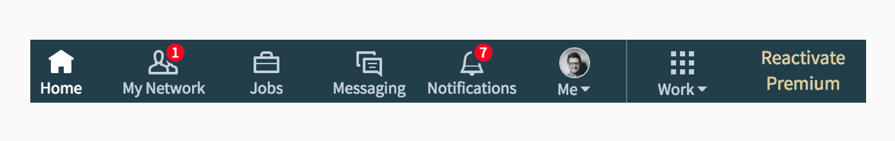 Go to the LinkedIn homepage, and you’ll see a navigation bar that looks something like this: