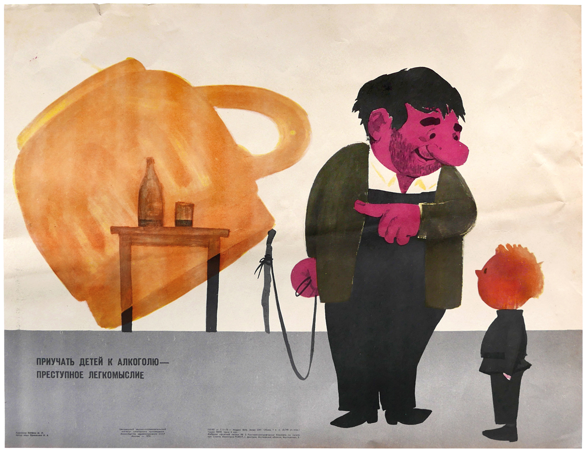 “A new book features a collection of Soviet anti-alcohol posters produced during Mikhail Gorbachev’s unsuccessful campaign of 1985-88 that sought to eradicate alcohol abuse in the country. Many of the graphics make use of visual metaphors: bottles and glasses are repeatedly depicted as trapping the drinker, or transforming into weapons to wreak havoc on individuals’ lives.” (Mark Sinclair, Creative Review)