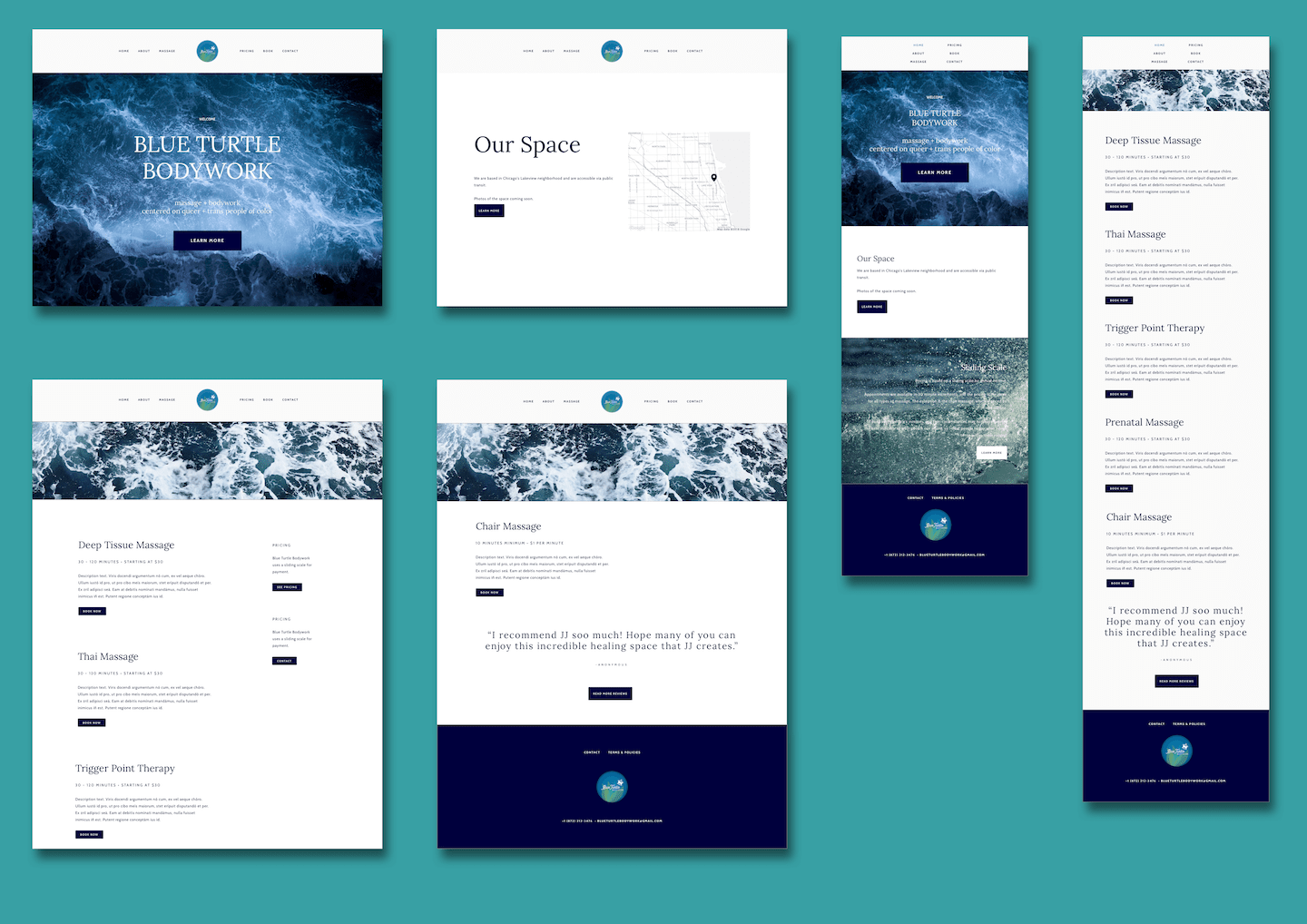 I’m most proud of the website design I did for Blue Turtle Bodywork. Blue Turtle Bodywork is a bodywork service in Chicago that centers the healing and wellness of queer and trans people of color (QTPOC). As someone who is part of that community, it meant a lot to be able to partner with a business that specifically prioritizes QTPOCs.