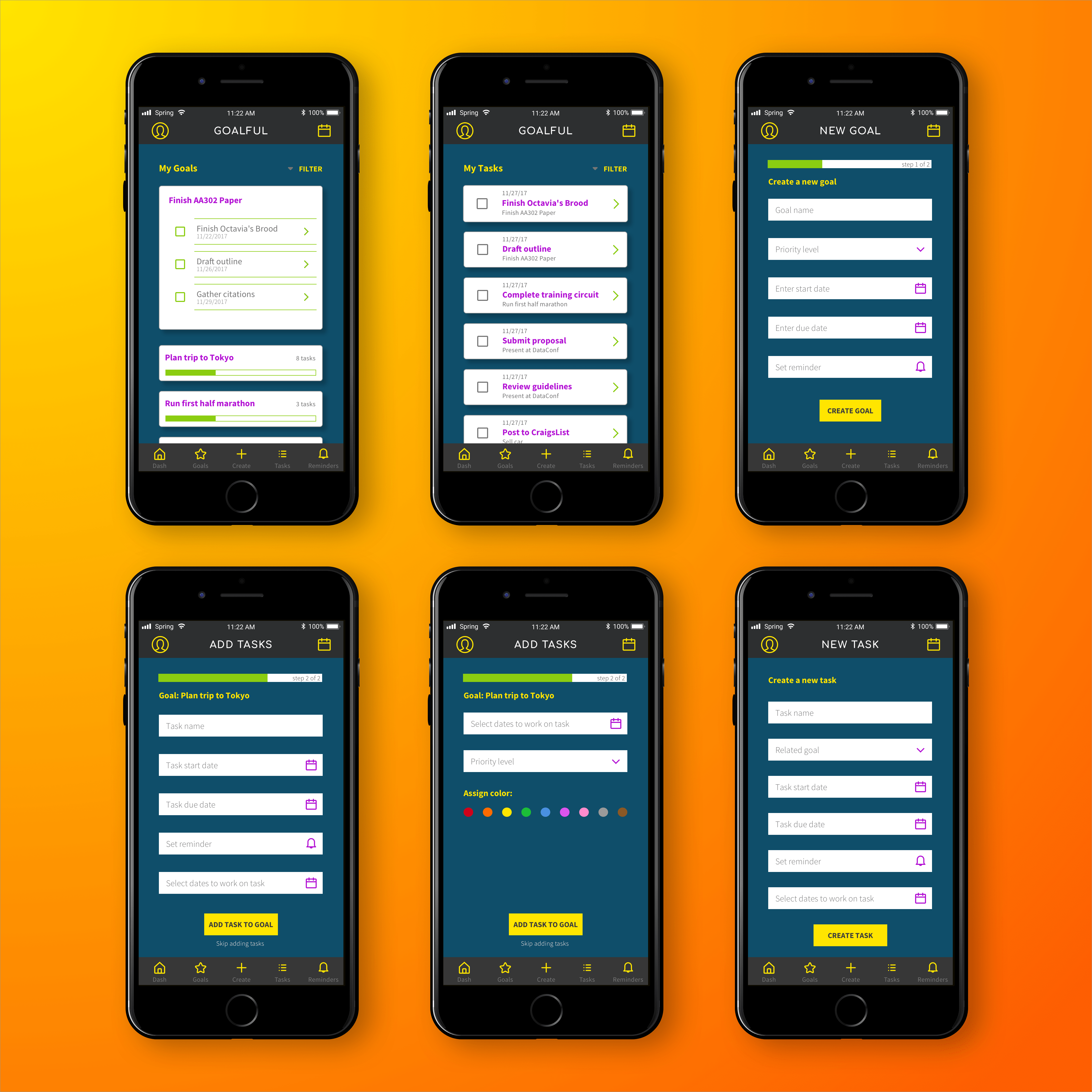 High-fidelity mockups from Erika’s Goalful project.