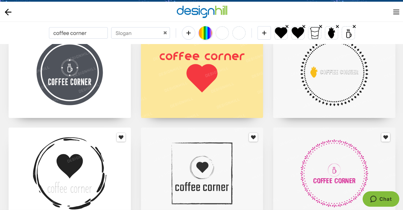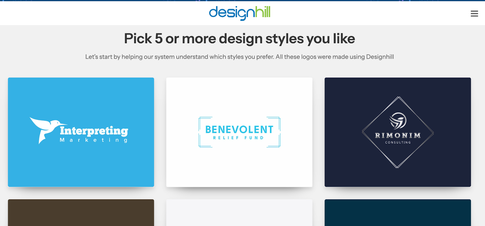 Designhill is a powerful tool that offers a lot of options in terms of customization, personalization, and preferences. You start by selecting some designs you like and then provide business type and keywords to generate logos using various iconography and styles.