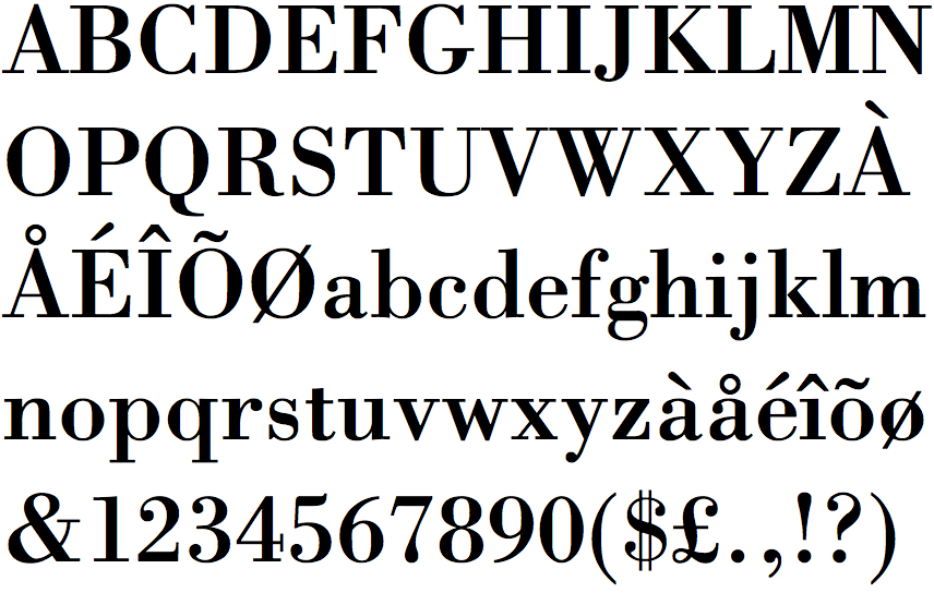 Bodoni is characterized by high stroke contrast—meaning that the horizontal strokes are very thin compared to the vertical strokes. It is also relatively geometric and rational in construction, compared to the more organic shapes in serifs that were in use at the time, like Baskerville and Garamond.
