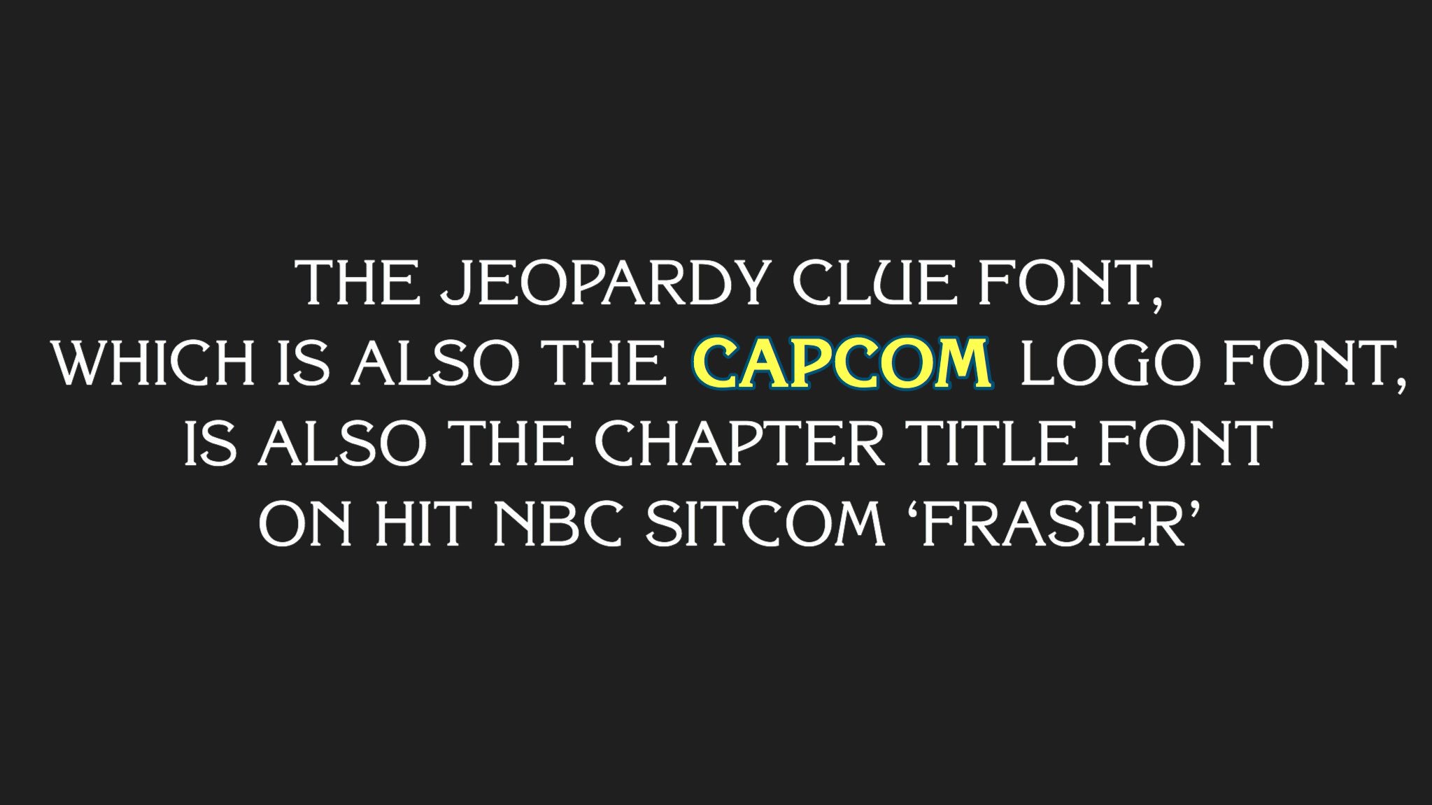 Korinna became a popular choice in the 80s and 90s. It’s used as the question font for Jeopardy!, and features in the sitcom Frasier, where it’s used in the title slides between chapters.