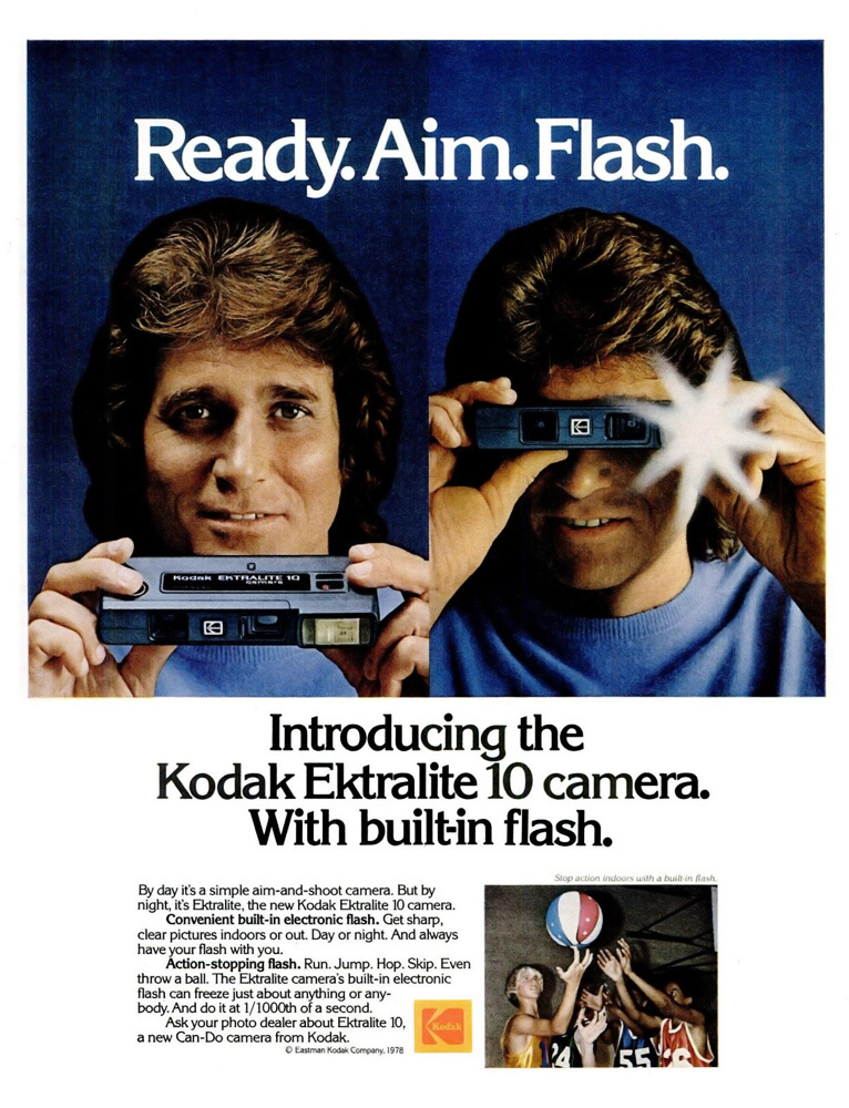 In the world of type design, Korinna is a rare creature: ideal for use as a display face because it is impactful and decorative at large sizes, and also suitable for body text, due to its relatively high x-height and clear, open letterforms. This late-70s ad from Kodak uses it throughout.